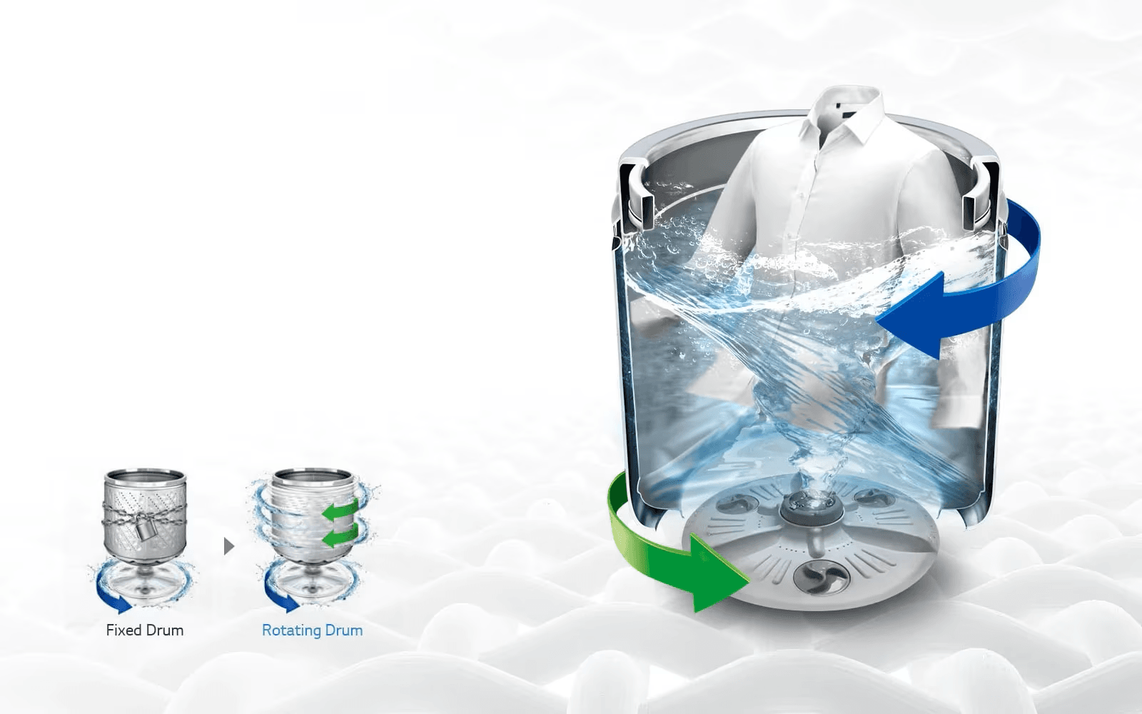 Smart Motion is 3 kinds of motions created by Smart Inverter for optimized washing by fabric type. Enjoy better combination for better care.