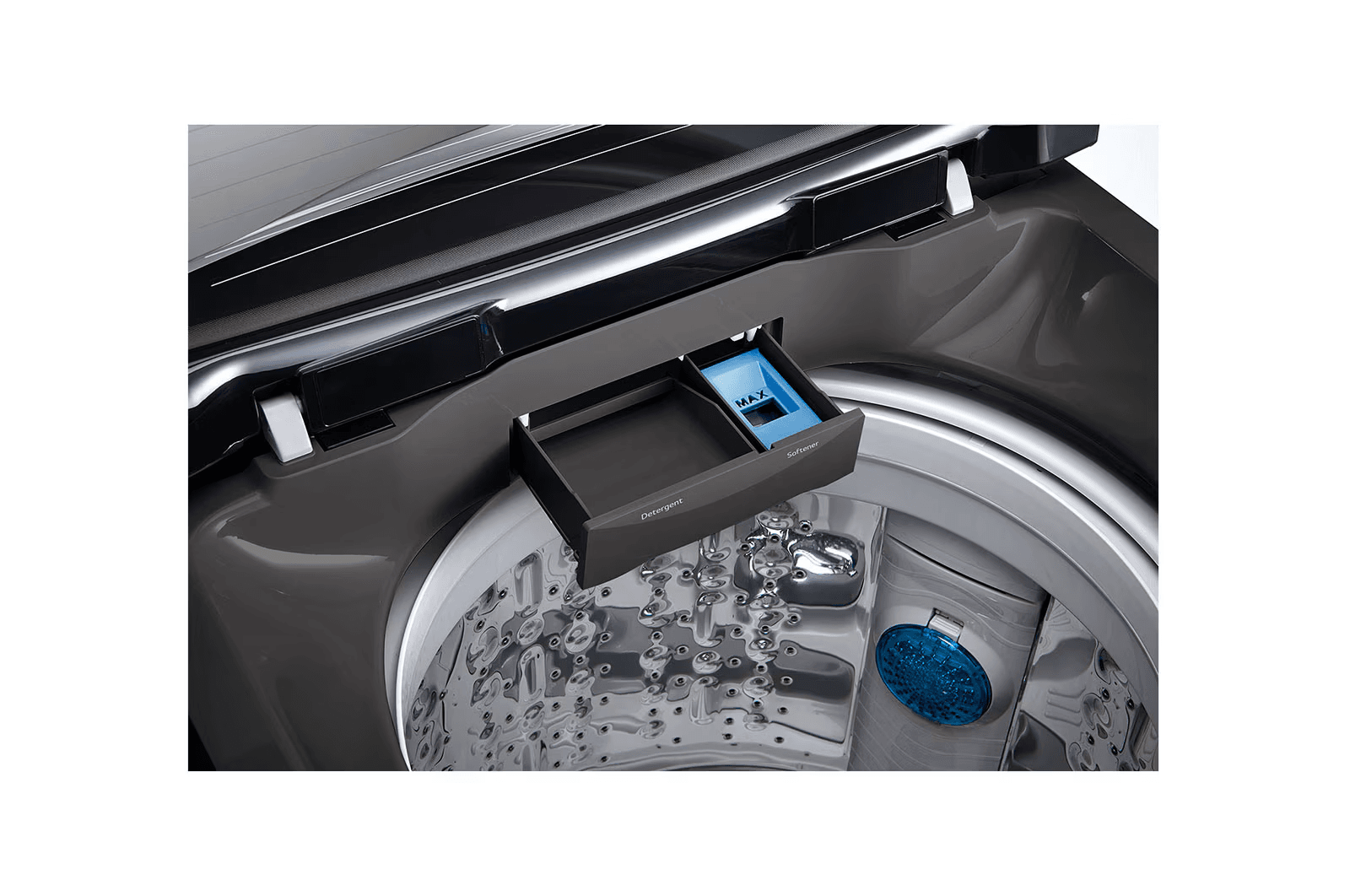 Side Waterfall enables the best mixing of detergent with water while minimizing detergent residue that can cause skin irritation and allergy.